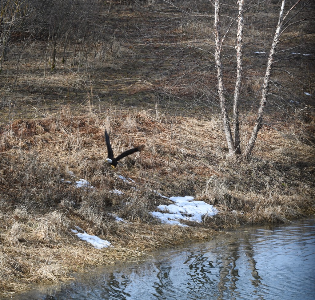 And then I saw it! An incredible sight of a bald eagle circling the pond…repeatedly. I’ve seen them over my house, much higher up, but never so close, so low, exhibiting such menacing behavior, as it searched out its next victim.