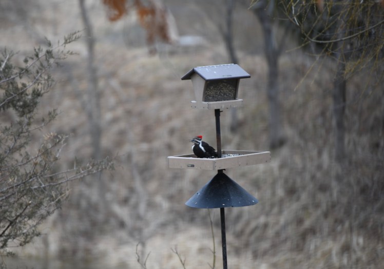 This pileated decided to take an easier route to consume a late afternoon snack — perch, take a seat, and eat. This is a sight I don’t see very often, in fact I can’t recall ever seeing a pileated on this feeder. Oh well, sometimes comfort must come first!