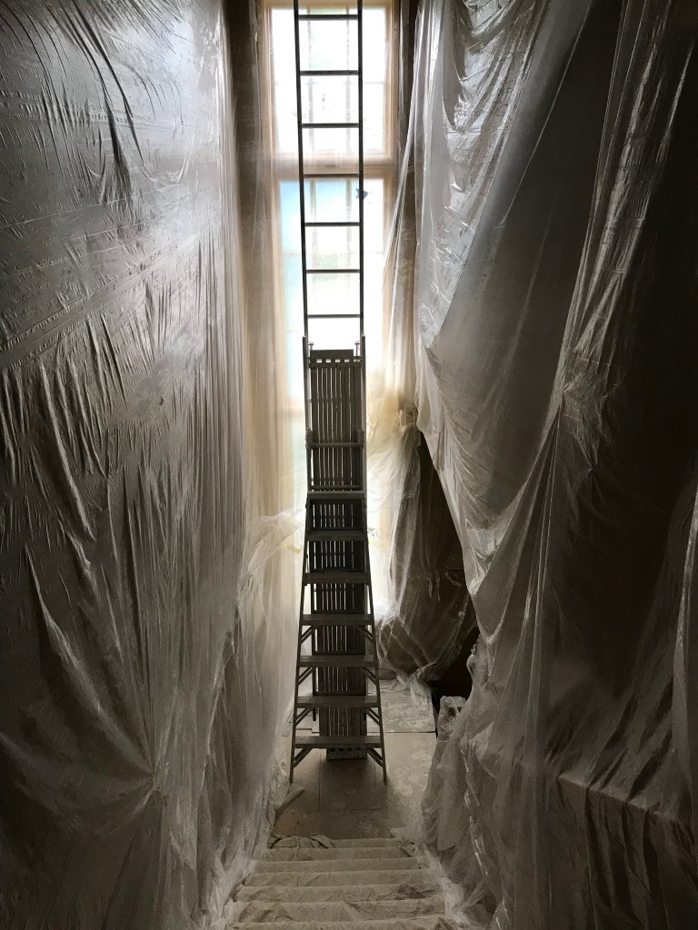 On a general note, the sanding of the ceilings was probably the worst of all the jobs. All the rooms had to be covered in plastic and the mess from the sanding was awful.