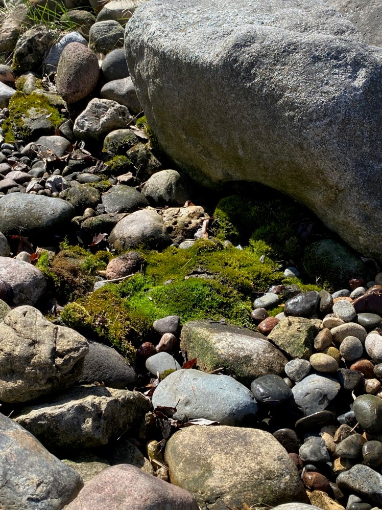 But after a long winter, leaves collect among the rocks, the smaller rocks get shifted by heavy rains and winter ice, and the deer displace rocks as they cross over the creek bed to get to the back yard. Therefore, maintenance needs to occur, and it is a nuisance. But like most landscaping projects, the reward is almost instantaneous.