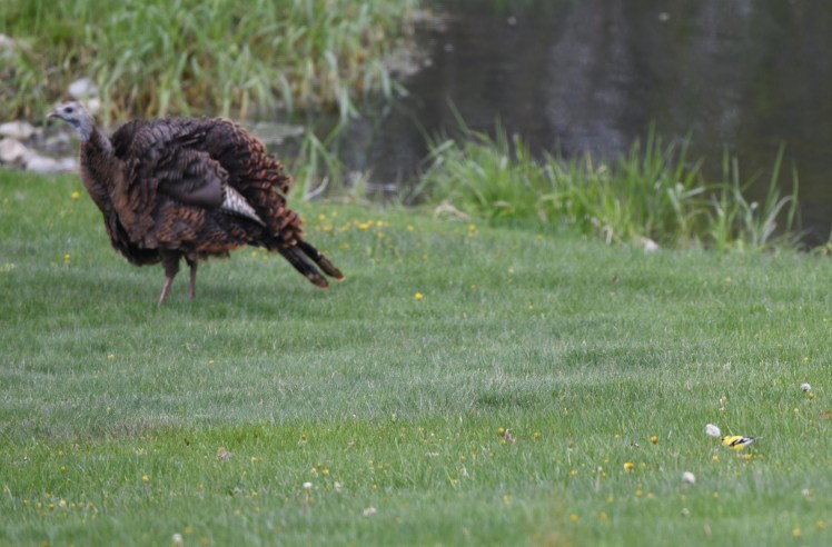 I had to include this next photo. It will make you chuckle. Take a look at the size difference between the wild turkey and finch.