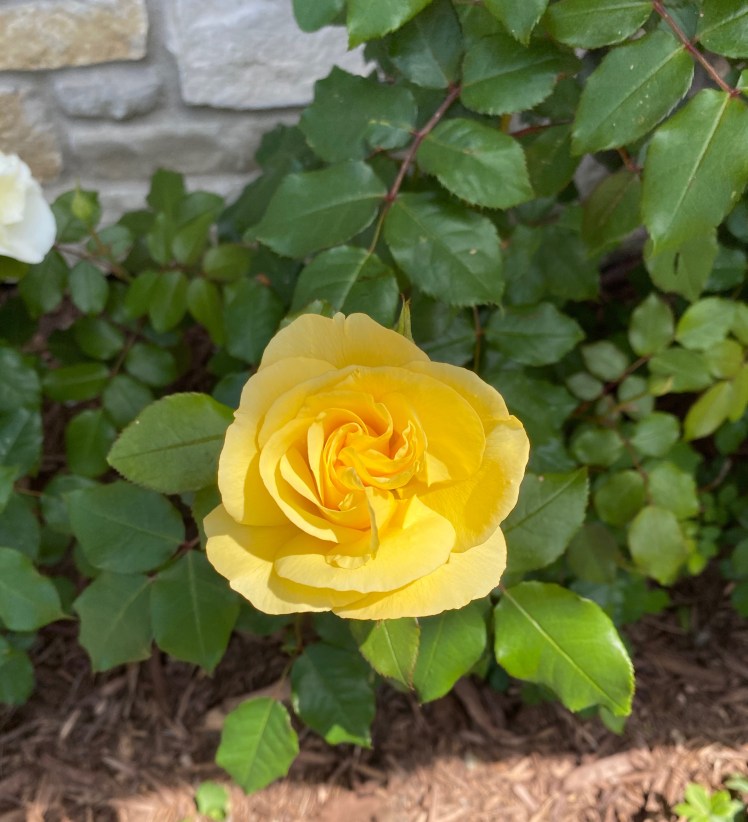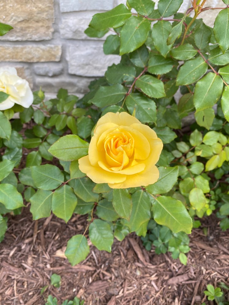 Well, I must have planted the roses just so, because they are thriving. Hallelujah! Buds abound. But just in the past couple days I watched as a bloom unfurled and greeted the area with a sun-colored kiss.