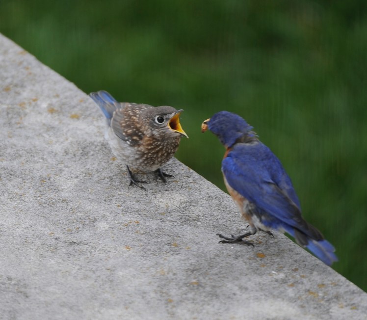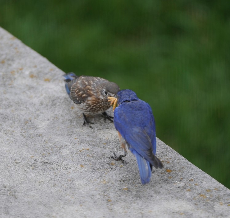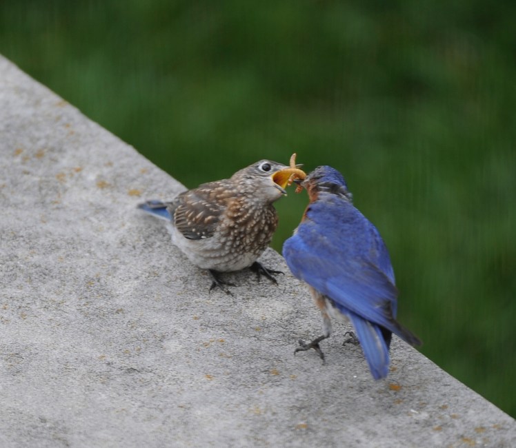 The other day, I put some mealworms on a limestone cap off the back patio and waited. Sure enough, dad came to pick-up…and serve.
