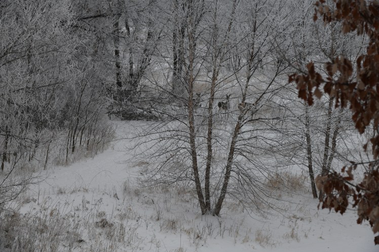 Everyday I’ve seen something different and have tried to capture it in the photos below. But I must say that one thing I have not been able replicate with the camera is the whole when I look out a window at a copse of trees in the distance or the forest behind my house. Maybe I’ve realized that these broader scenes weren’t meant to be a true representation of what I see. Maybe I was meant to look with my own eyes, for my own enjoyment. And although the sun is not shining, I think the beauty is accentuated by Mother Nature’s cloaked background.
