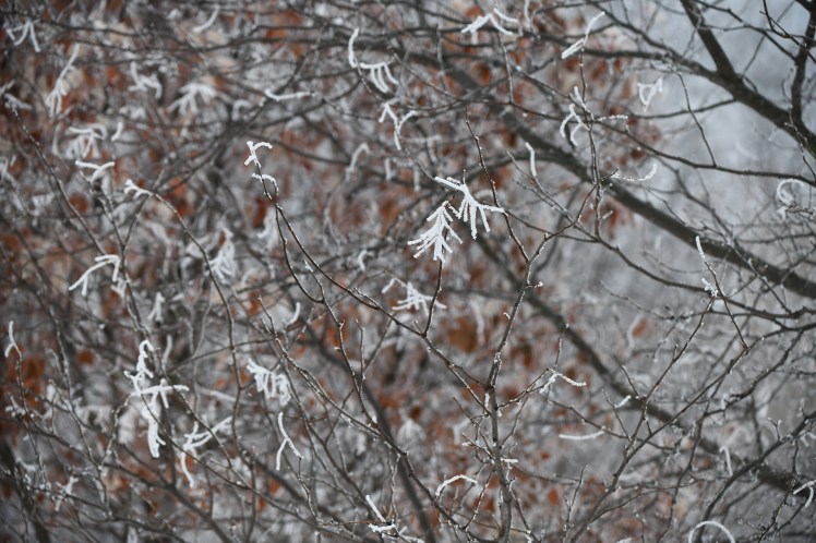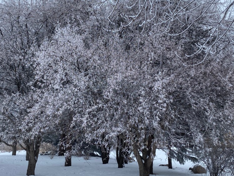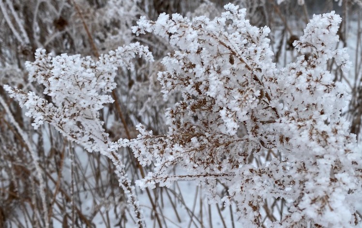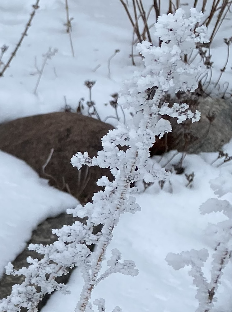 Although we have not been blessed with sunshine, we have been able to look upon the magnificence of a land covered in hoar frost — a bland winter canvas transformed into an enchanted, magical wonderland. Maybe this is Mother’s way of saying, “Look, there is beauty in the world. I will leave it here for a while so you can see that beauty is all around you.”