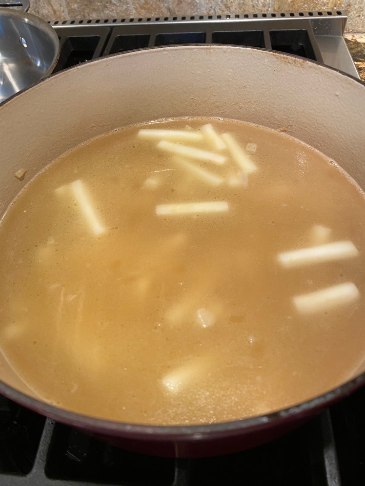 The ingredients are simple, but the soup does take a little time. In my estimation, well worth it. You end up with a delicious soup that can be served on a weeknight, or as a first course to a special meal or dinner party.