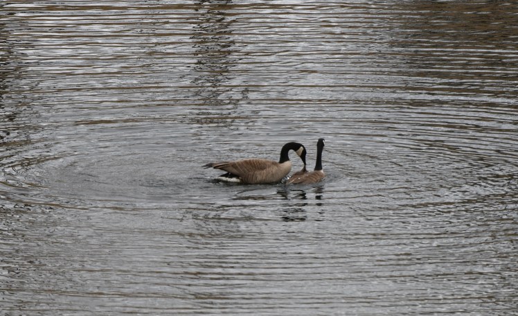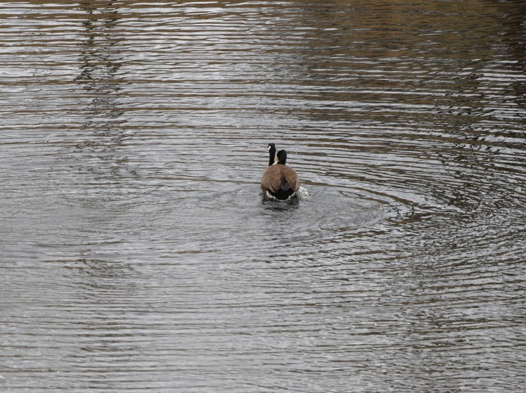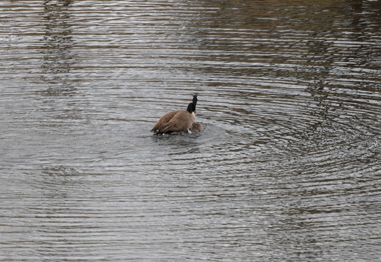 Although I don’t always catch the mallards and wood ducks “tending to business,” the geese are easy. Their mating ritual is lovely and Act 1 of both male and female bobbing their heads in and out of the water gives me time to set up the camera. Maybe you might think me a voyeur, spying on the intimate happenings of wildlife, but I just consider myself lucky. The pond is a refuge — a safe haven and a constant source of activity which gives me nothing but pleasure.
