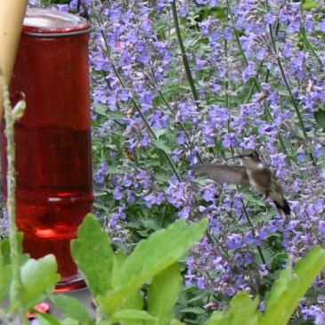 The hummers are abundant in the yard and frequent visitors to the feeder that I have nestled in a small flower bed. Not too far away — fairly adjacent actually — are pink blooming shrub roses that offer pollen delights to any manner of bee and butterfly. Now I’ve noticed that a juvenile hummingbird likes … More Hide and Seek